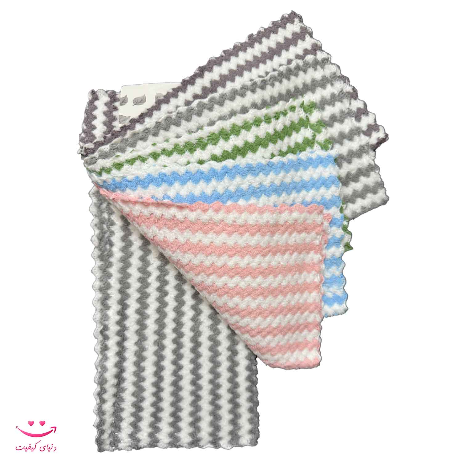✨ رنگهای شاد و جذاب: ترکیب های رنگی دستمال آشپزخانه پولیشی 6 عددی زیگزاگ، هم شیکه و هم فضای آشپزخونه رو سرزندهتر میکنه.