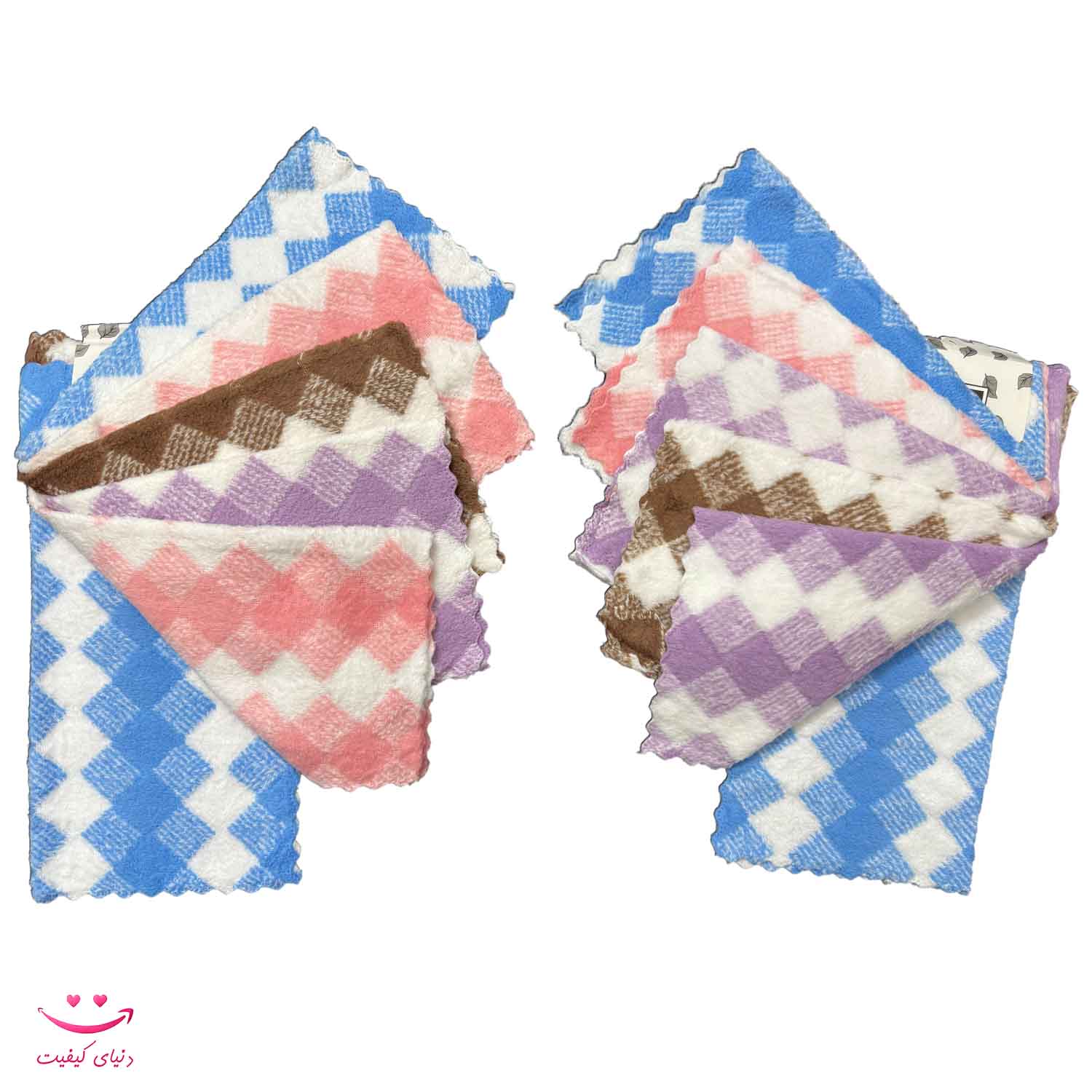 ✨ رنگهای شاد و جذاب: ترکیب های رنگی دستمال آشپزخانه پولیشی 6 عددی طرح لوزی، هم شیکه و هم فضای آشپزخونه رو سرزندهتر میکنه.