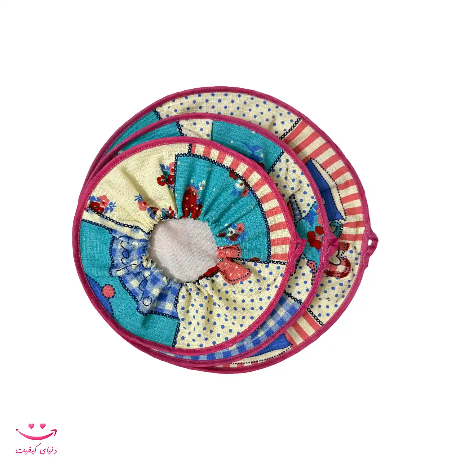 ❇️ طراحی پارچهای این دمکنی باعث میشه به سایزهای مختلف قابلمه به راحتی بخوره.